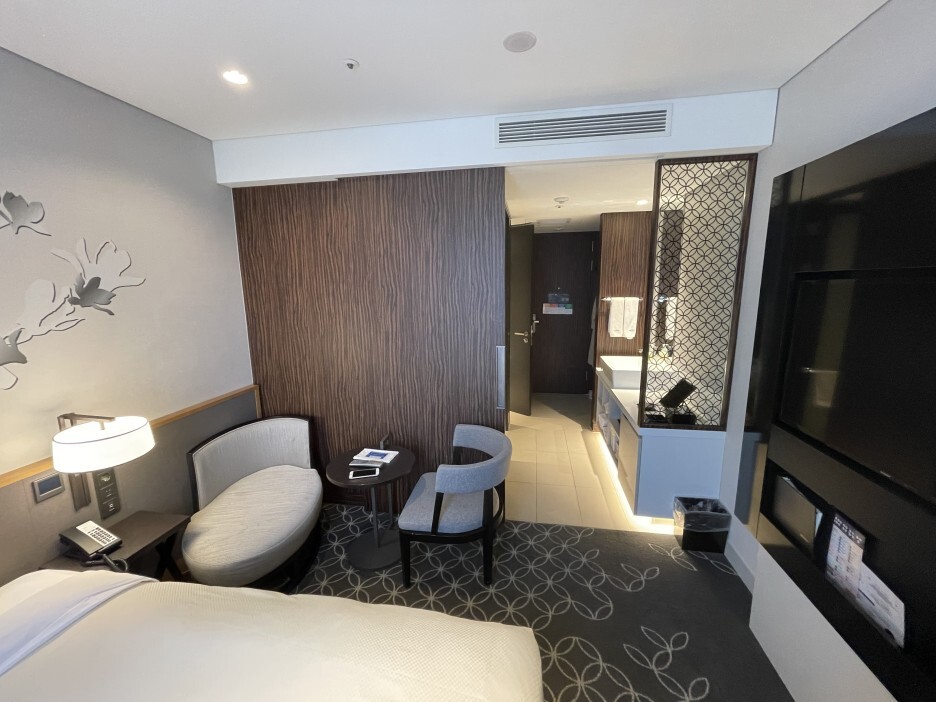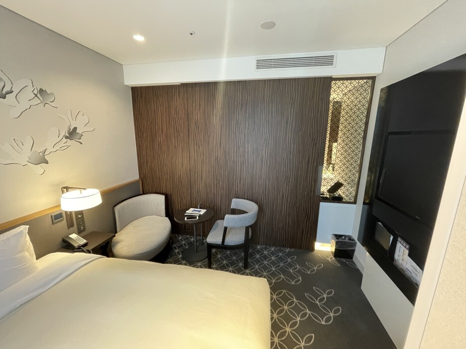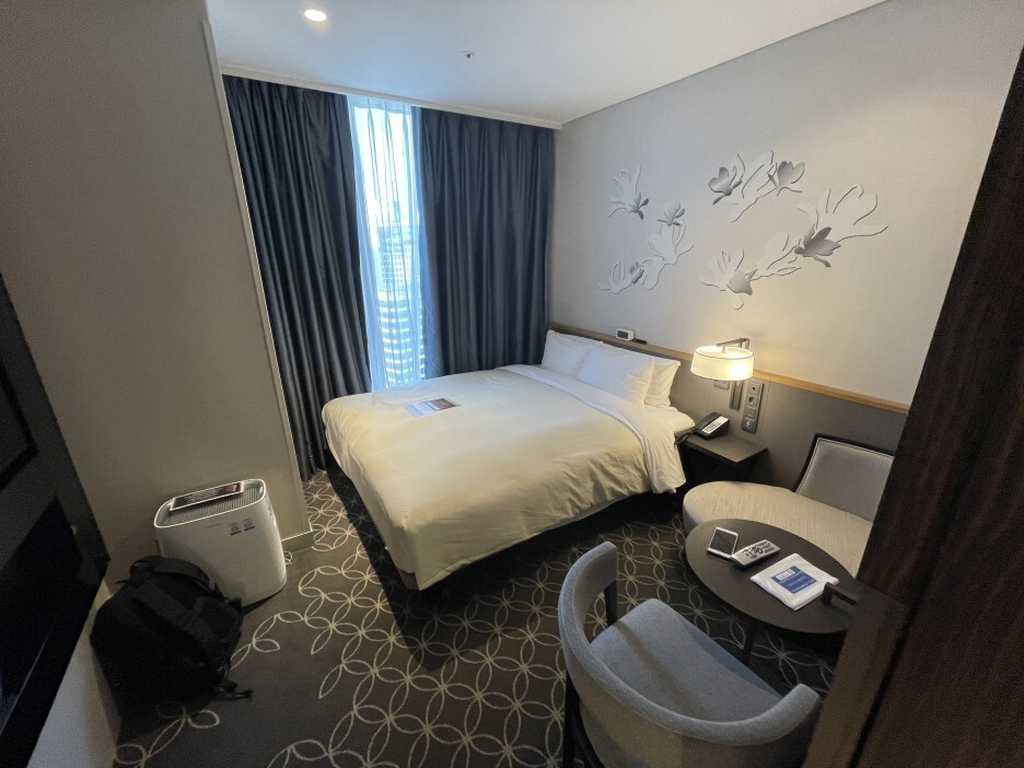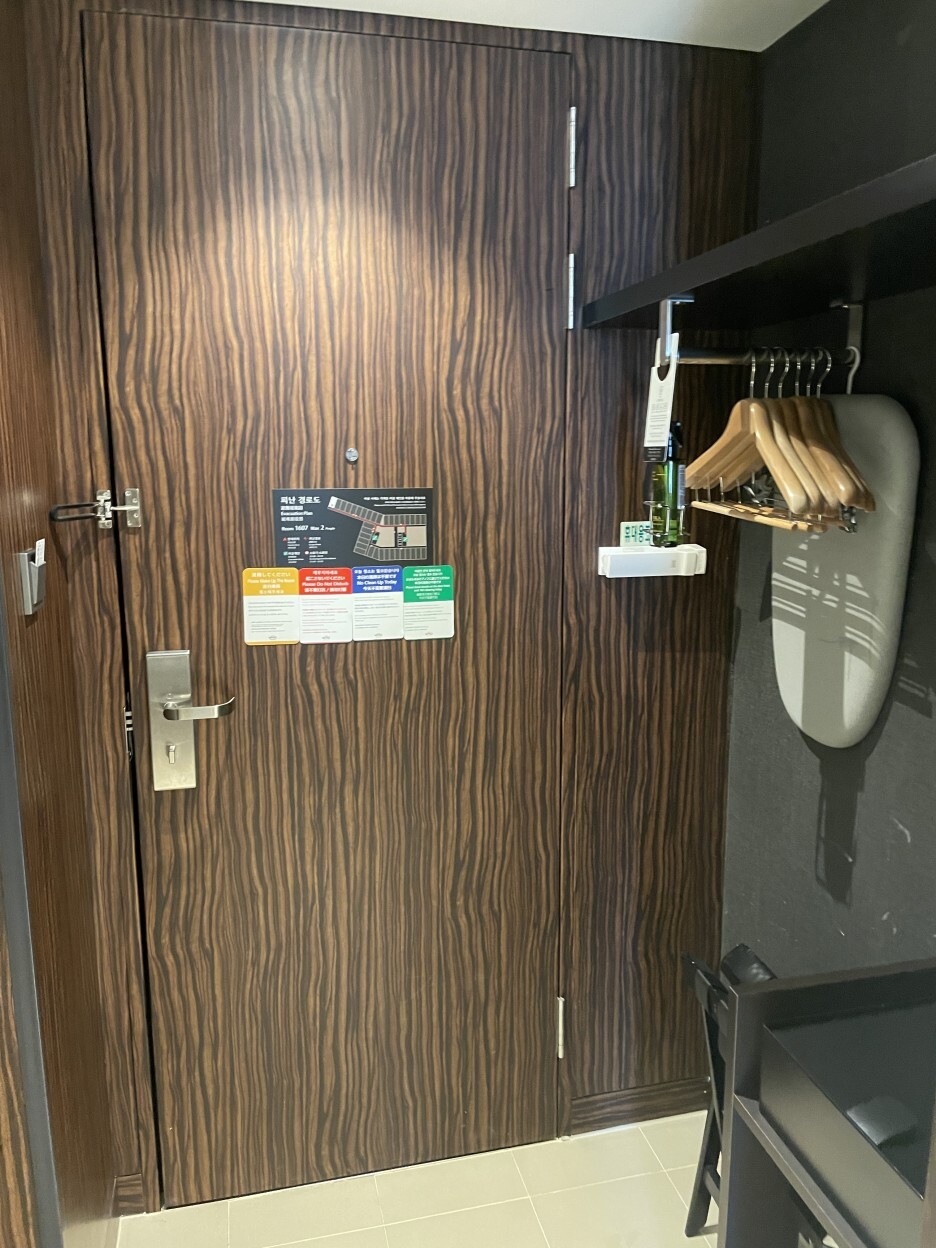 딱 들어왔을 때 크게 좁다는 느낌은 없었고 조명의 분위기와 화장실과 욕실의 배치 그리고 인테리어가 비즈니스 호텔치고는 꽤나 좋았다.
