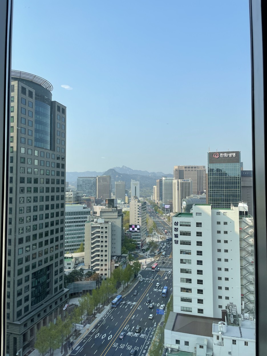 그 뒤에 청와대 그리고 서울을 감싸고 있는 듯한 인왕산과 북악산까지 담아내는 뷰는