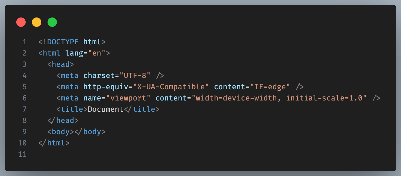 - <meta http-equiv="X-UA-Compatible" content="IE=edge" />: This meta tag sets the compatibility mode for Internet Explorer. In this case, it specifies that the document should be rendered using the latest version of IE's rendering engine.