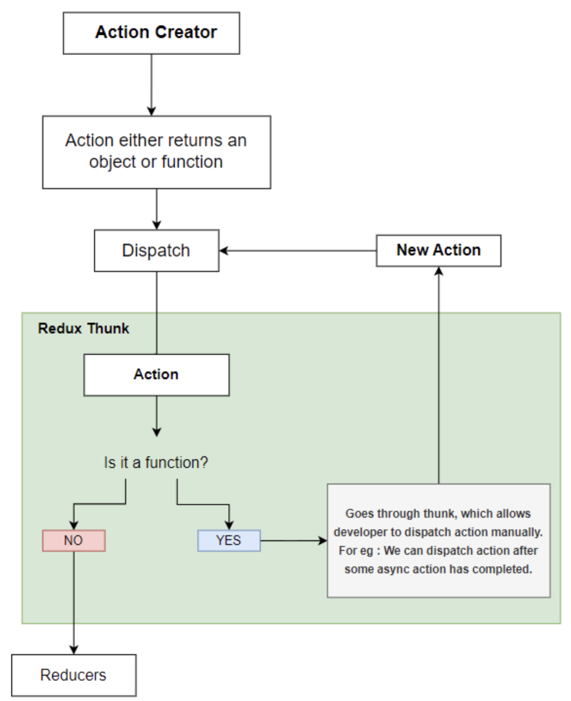 In this example, the getTodos function is an action creator that returns a function. This function is then passed to the dispatch function. The dispatch function will then call the function, which will perform an asynchronous task, such as making an HTTP request. Once the asynchronous task is finished, the dispatch function will dispatch an action to the store.