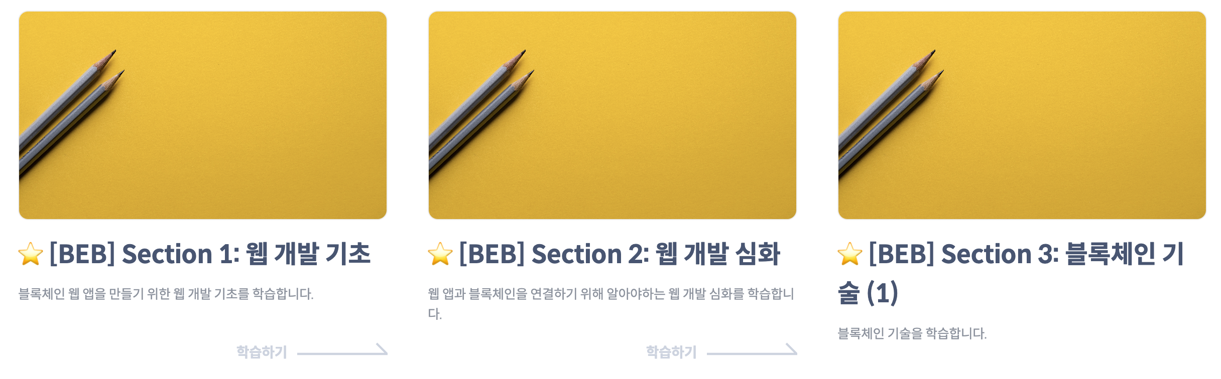 | 블록체인 부트캠프를 시작한 이유와 간략한 과정 (BEB 8기 코드스테이츠) (part 1) (1) | 2023.04.29 |