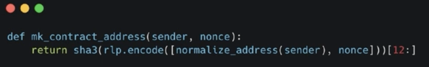 When EOA creates a CA or uses CREATE (OPCODE) on the contract, the network creates and returns an Address in the same manner as the code below.