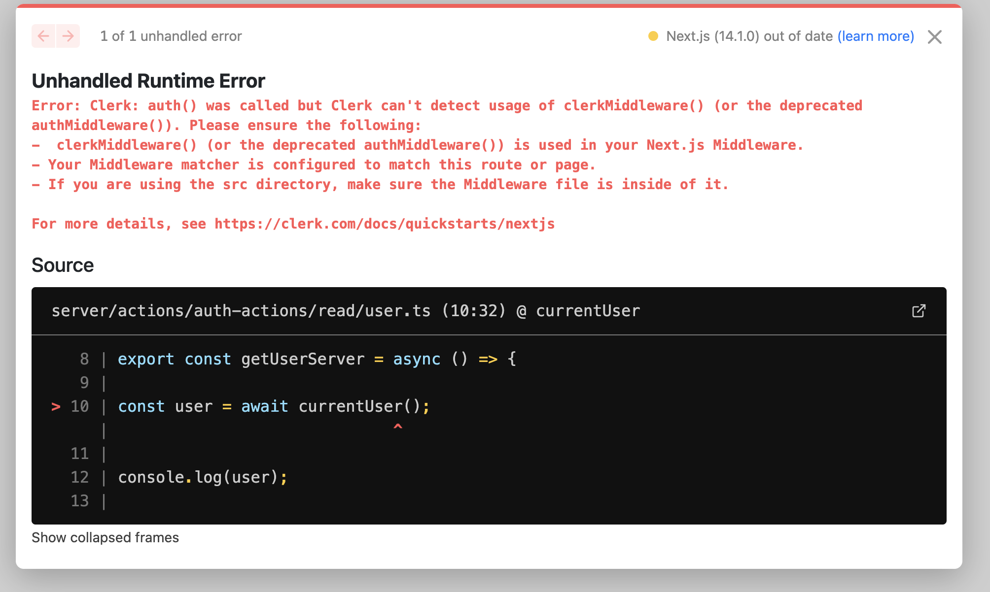 Nextjs 14 & Clerk V5 beta & middleware Problem 본문
